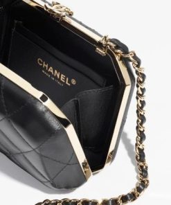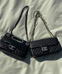 Design Chanel Small Shopping Bag Aged Shiny Lambskin Crystal Pearls; Black Metal Black