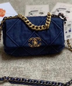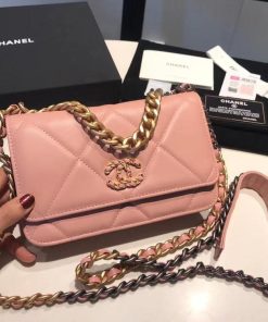 Design Chanel 19 Quilted Wallet on Chain WOC Grey Goatskin Mixed Hardware 20C