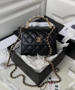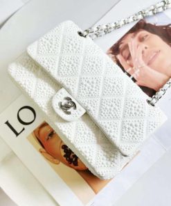 Exquisite Design Chanel Lambskin Clutch With Chain, Adorned with Imitation Pearls & Enamel: