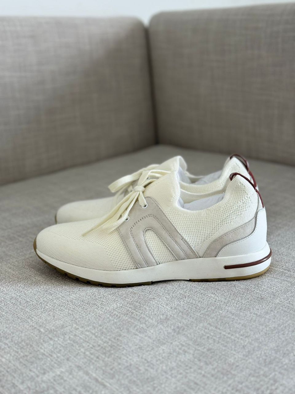 White sole in ultra-light rubber with kummel-coloured inserts and tread featuring the Loro Piana initials