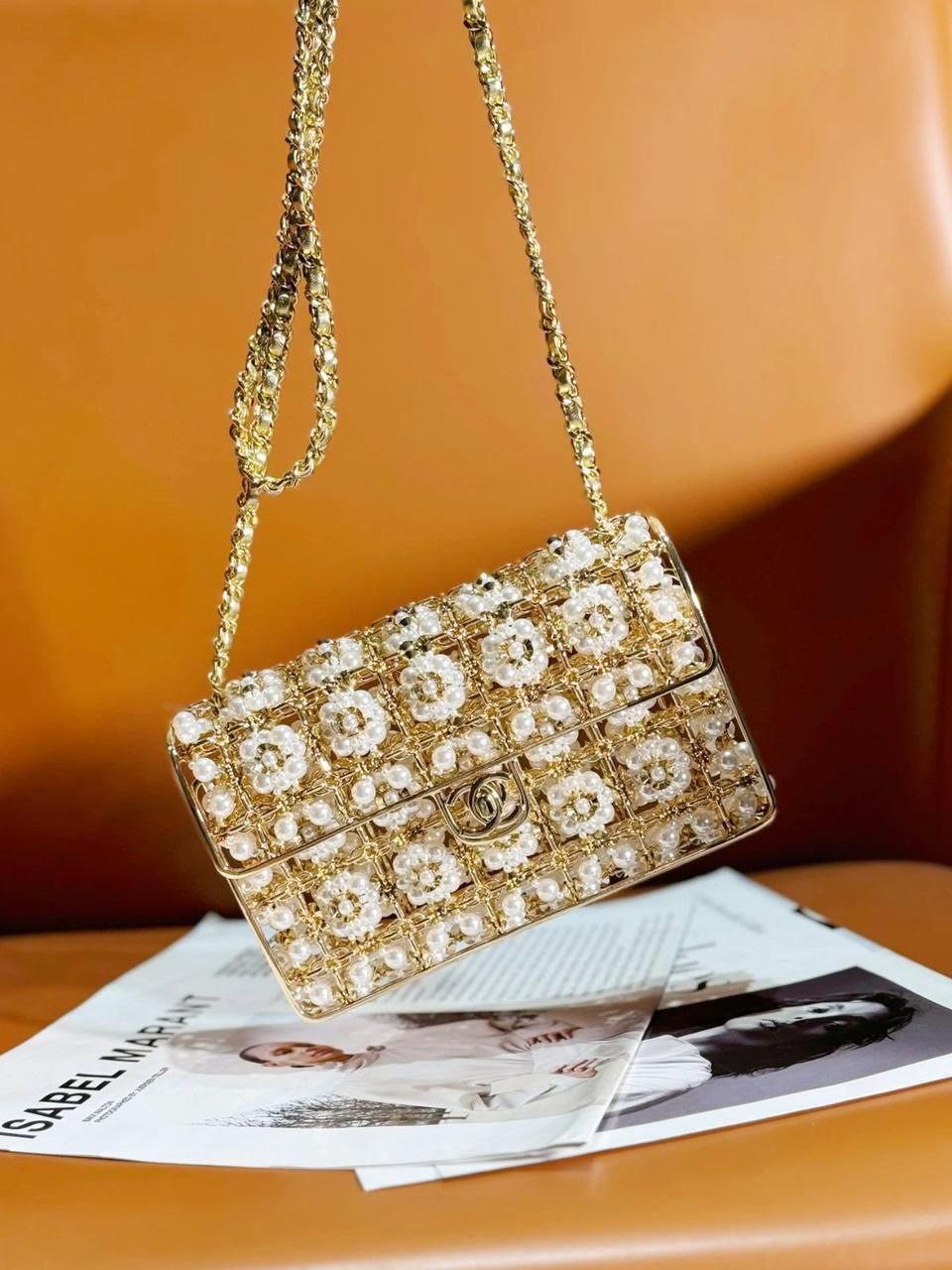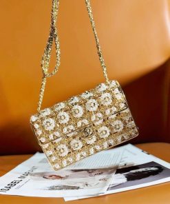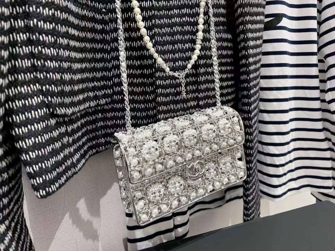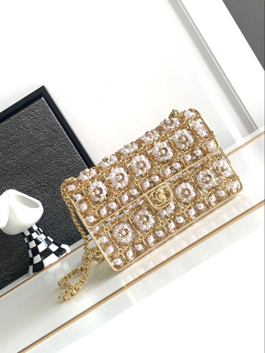 Handbag Name: Women’s Chanel Evening Bag Lambskin Black Pearl